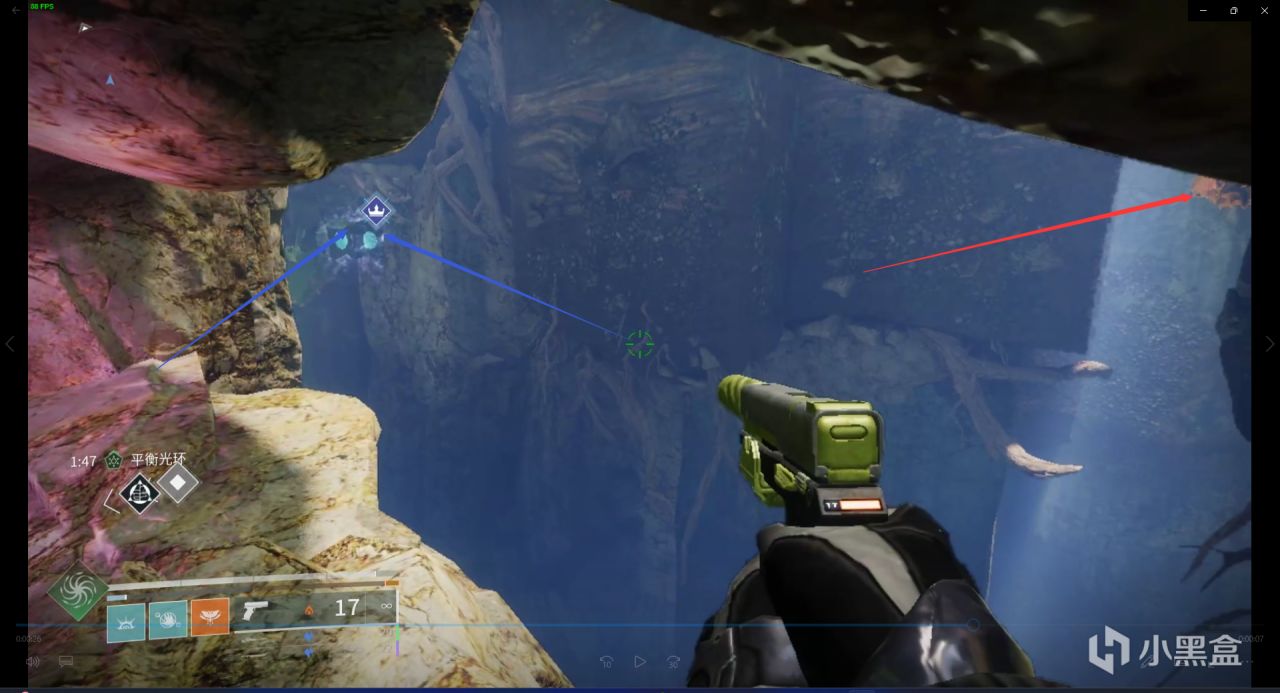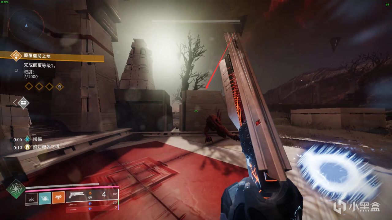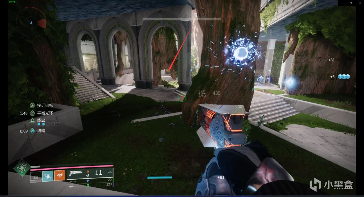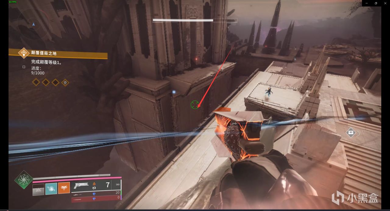 (注意:紅色需要用暗影屬性武器,藍色需要用光能屬性武器,開始射擊buff之後不要跳太高)