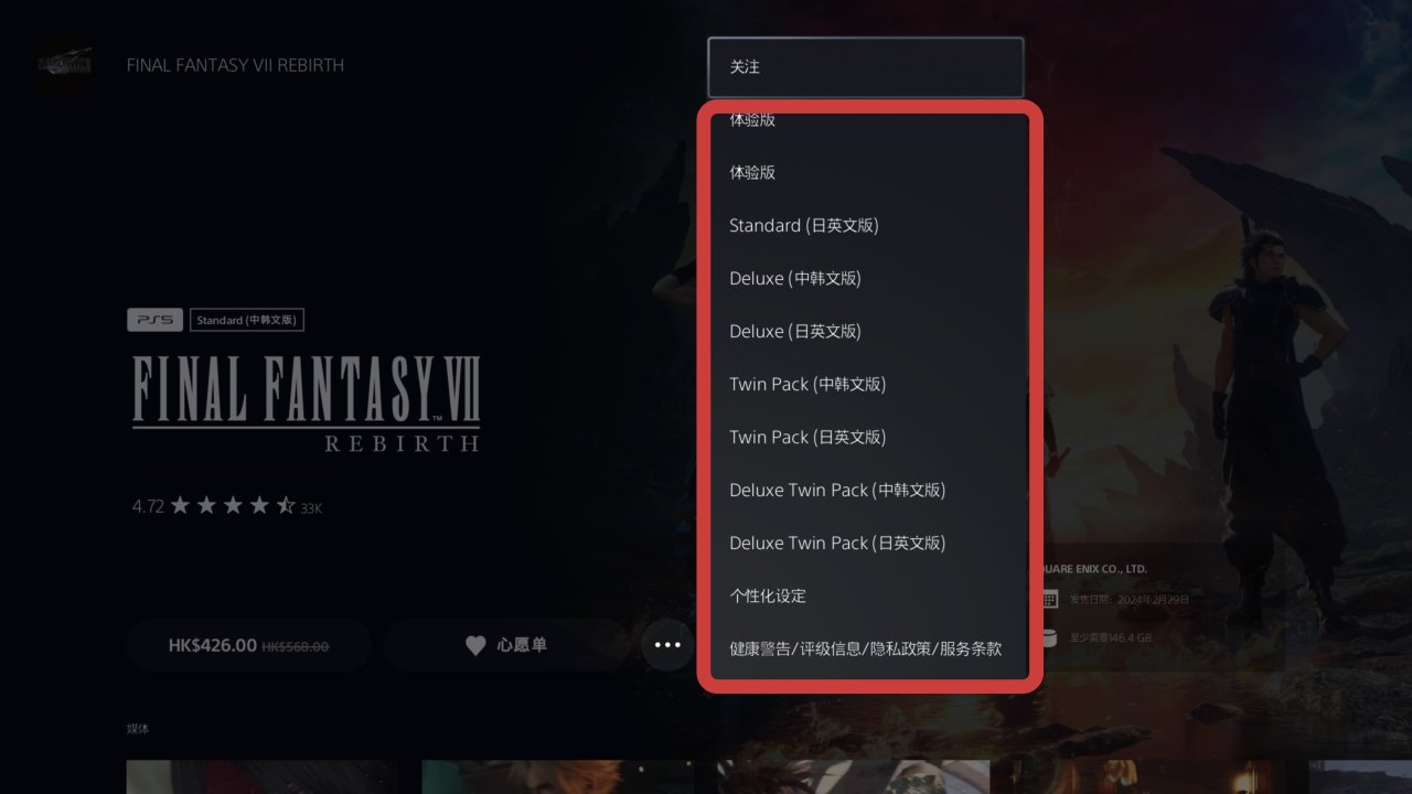 数字版游戏:可在数字商店购买或兑换码兑换,游戏跟着账号走。由于港服是高价区,游戏较贵,同游戏相较pc有的要贵出几百块钱,即使打折也不便宜。购买游戏时也要注意语言版本,部分老游戏不同语言是分开卖的,别买错版本。