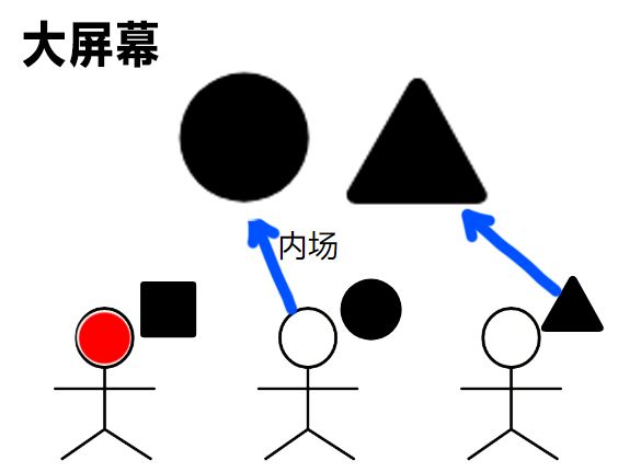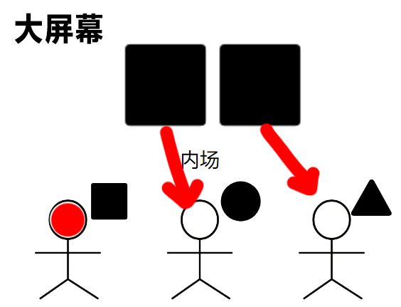 如果此時內場三人全部執行正確,那麼大屏幕就必定出現和自己幻化手裏圖案完全相同的2個循環滾動的圖案