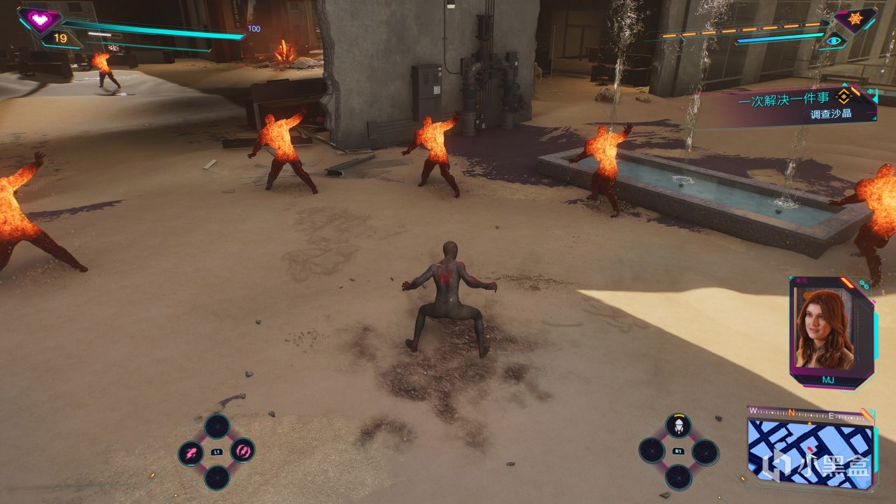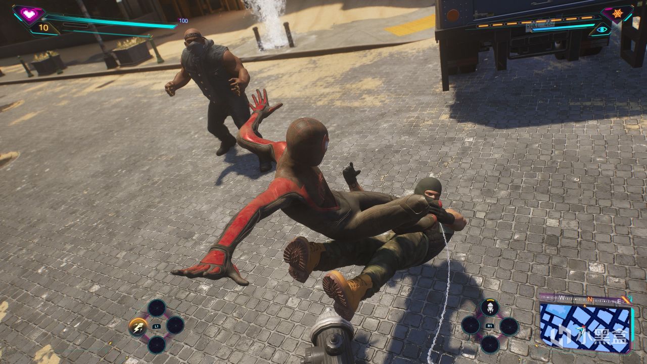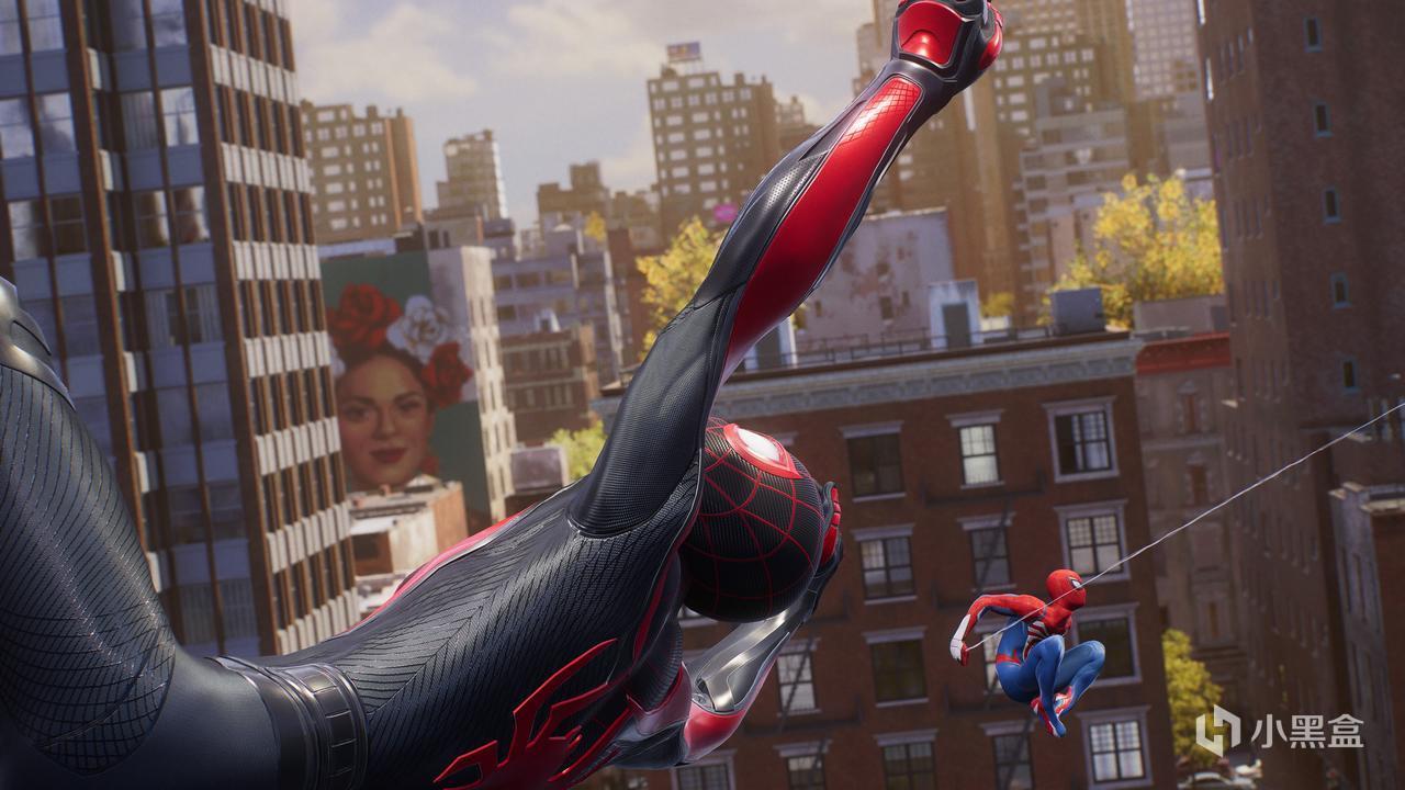 尽管在一开头就给出了彼得帕克和迈尔斯莫拉莱斯双人合作战斗,但显然这种“双人成行”无法成为常态,在游戏的大部分流程中,我们还是需要在两位角色之中完成切换(通过好邻居软件)。
