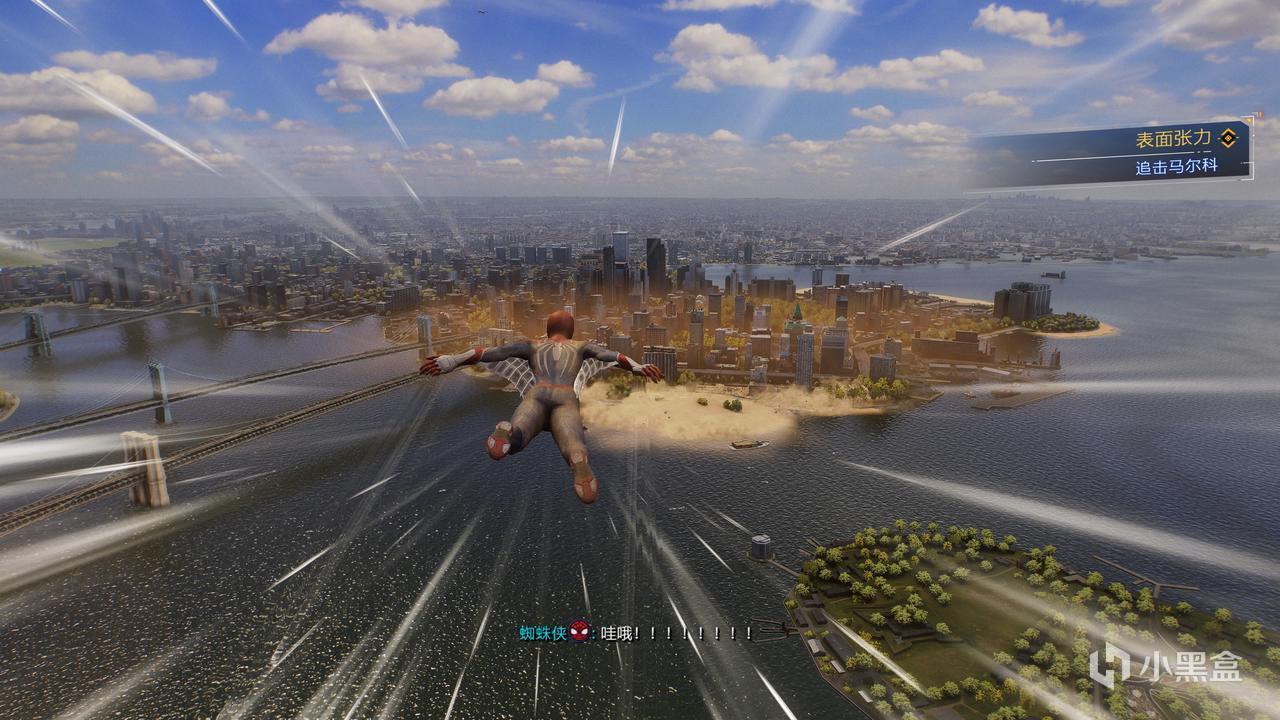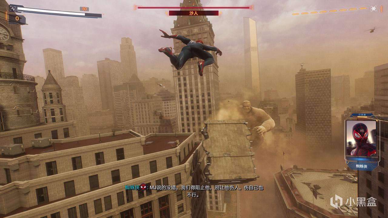 但让我惊讶的不是这些在蜘蛛侠的原作漫画中就已经展开出现的气质,而是失眠组在已经很好的蜘蛛侠前作上还能做出这么多优化——两位蜘蛛侠的战斗系统的升级与整合、格挡对于整体玩法的融入、手工打磨后和城市与城市中 的居民关联更紧密的支线、支线系统的系列感、巨物合作战斗的惊艳演出等等......