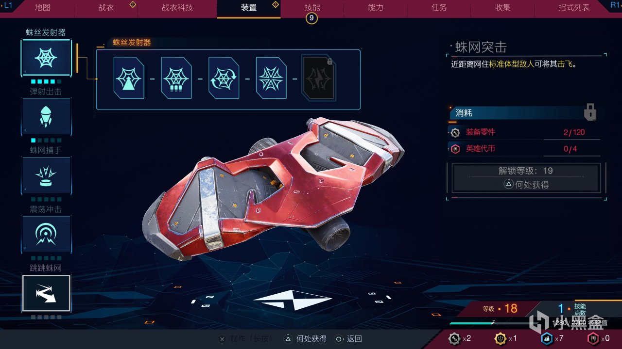答案除了升级获得的技能点,还在于系列传统的更重代币收集——本作成为了和猎人高度相关的零件和高级零件、还有城市代币和英雄代币。两种零件和两种代币可以用来升级蜘蛛战衣和战斗装置(都是两人通过的),不过英雄代币比较难以获取,后期后期支线任务或者单个区域完成度达到100%。