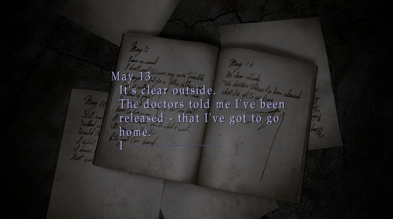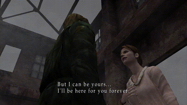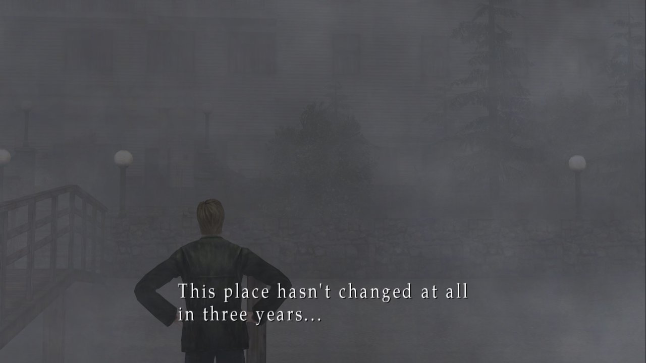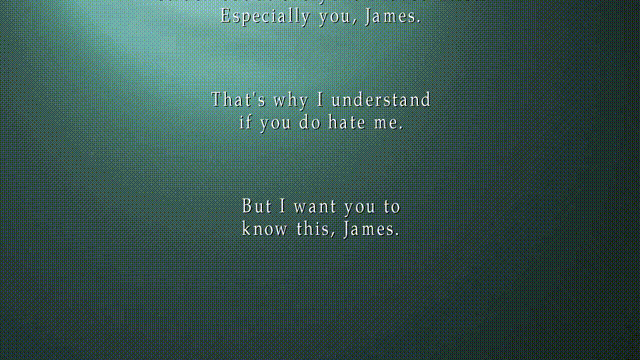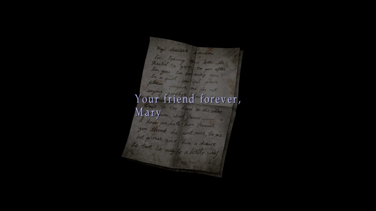“在我永不停止的梦中,我见到这个小镇,寂静岭,你答应我哪天要再带我来,但是你没有实践诺言,现在,我独自一个人在这里,在我们特别的地方,等着你。”