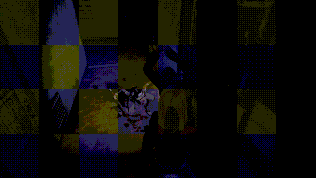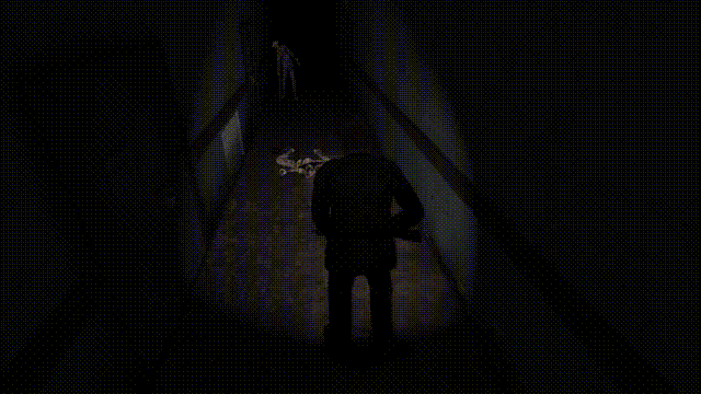 再说说游戏的战斗系统,像我上面说的一样,游玩过程中没有任何UI,屏幕上自然也就不会有任何东西明确的告诉你怪来了,但是我们身上的收音机确实会在怪来的时候发出滋滋滋的杂音,结合固定视角,这个游戏需要大量的“听声辩位”,甚至是“盲人摸象”。