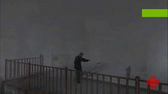 但好在我们可以按住“F”键举起武器,这时候詹姆斯(主角)会自动锁定怪物,然后我们再点空格就可以开火。