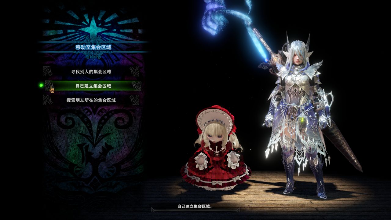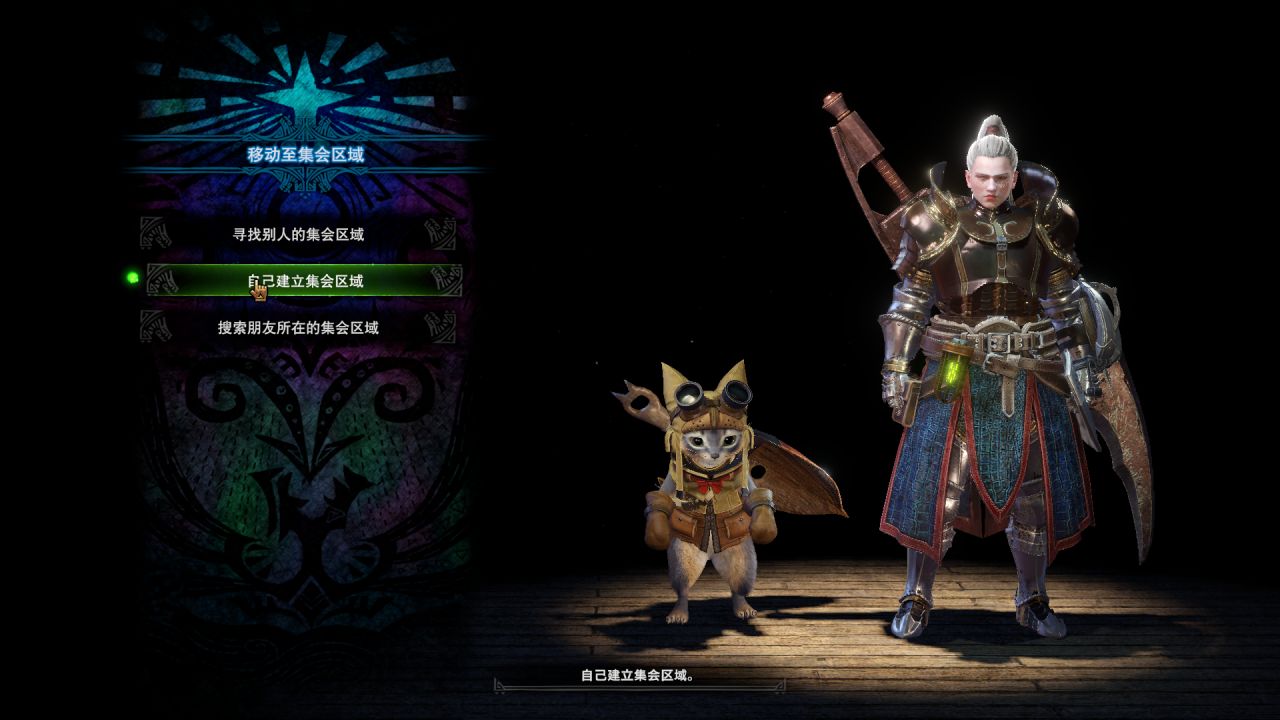 可以簡單理解爲聯機大廳、最多可進16名玩家、只有在集會區域玩家才能看到對方。存檔選擇界面可以選擇自己建立或加入其他玩家的集會區域。在挑戰多人boss--上位絢輝龍和冥赤龍需要多人合作時,怪物目標設置對應怪物,找一個人多的集會接任務可以事半功倍。公會名片可以設置自動送出和領取,有一個收集50個名片的成就。
