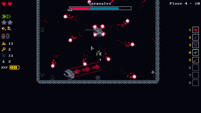 像素畫風,多個人物可選,多樣的武器以及加點,人物身上還可以共有五個槽位可以佩戴裝備,分別是頭,身體,腳,飾品,副手;關卡中設有寶箱房、神龕房等獲取武器和Buff增益,以及各種NPC,內容十分豐富