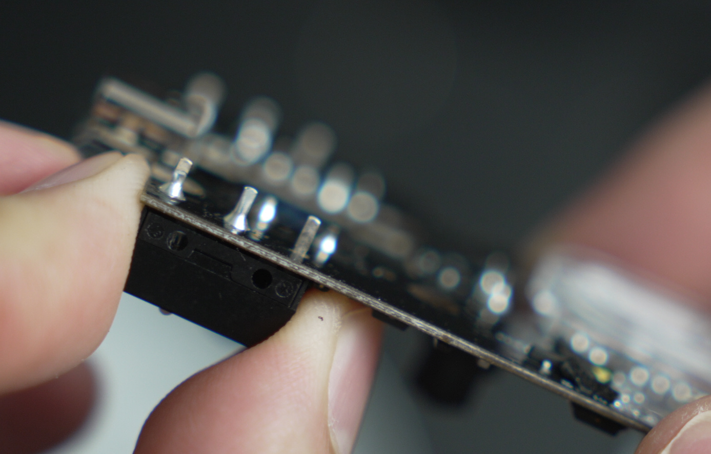 底壳没什么东西,但可以看到这个微动只焊了前面的两个角,后面这个脚并没有焊。但这并不影响微动的功能,机械3Pin微动的三个角一般是常开,常闭加上一个公共端,一般来说这个公共端是没有任何功能的,焊上去的话也只起到一个物理固定作用。但有些微动或者鼠标会设置功能,所以有些焊了有些没焊是非常正常的