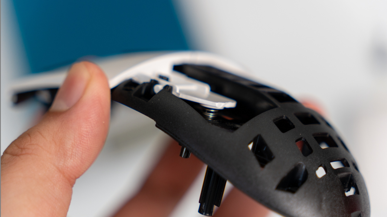 好在这次的侧裙和底壳厚度都足够高,如果你愿意的话,在底壳和侧裙上打打孔,我估计做到60g内不是问题。包括这个接收器收纳仓,一般来说都会做一个打孔减重,这次G3也没做。