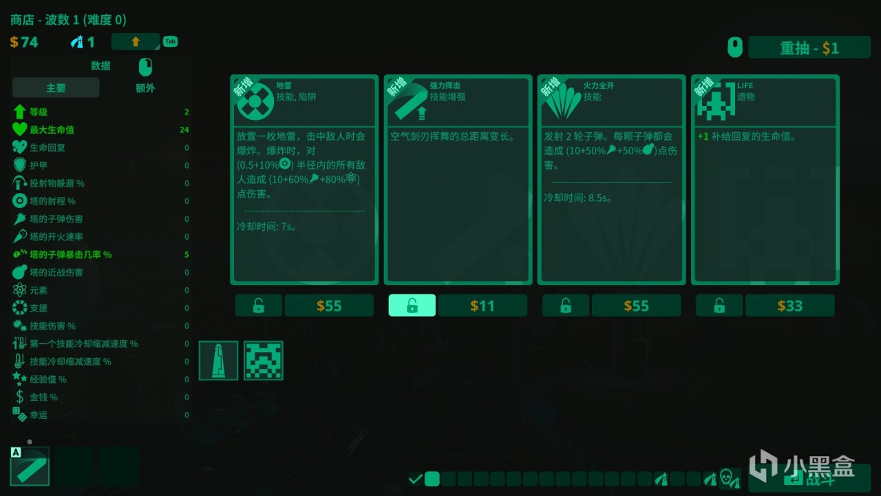 目前遊戲dome僅僅開放了三種塔防建築,每種都有着不同的開局屬性,這幾種屬性分別是幸運,血量,經驗值獲取率等等