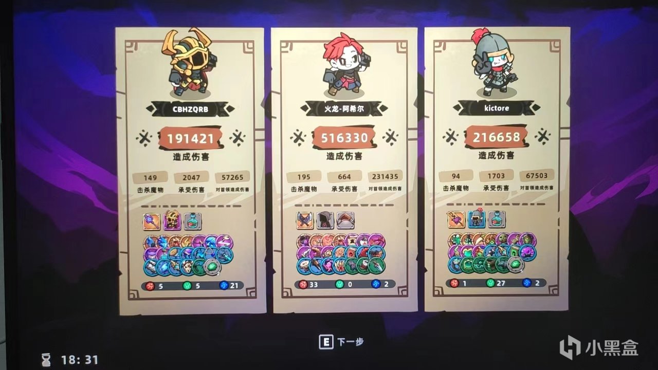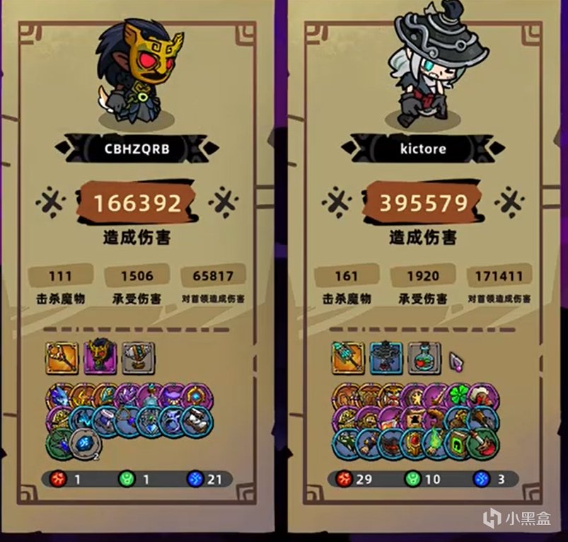 结算界面:惯例的秋后算账环节!让我看看谁伤害最低!结算界面做的真的详细,可以看队友是不是私藏了你想要的符文,总伤害,boss伤害,以及承伤(我那朋友玩蓝流法爷承伤比我绿流血牛承伤都高😂)