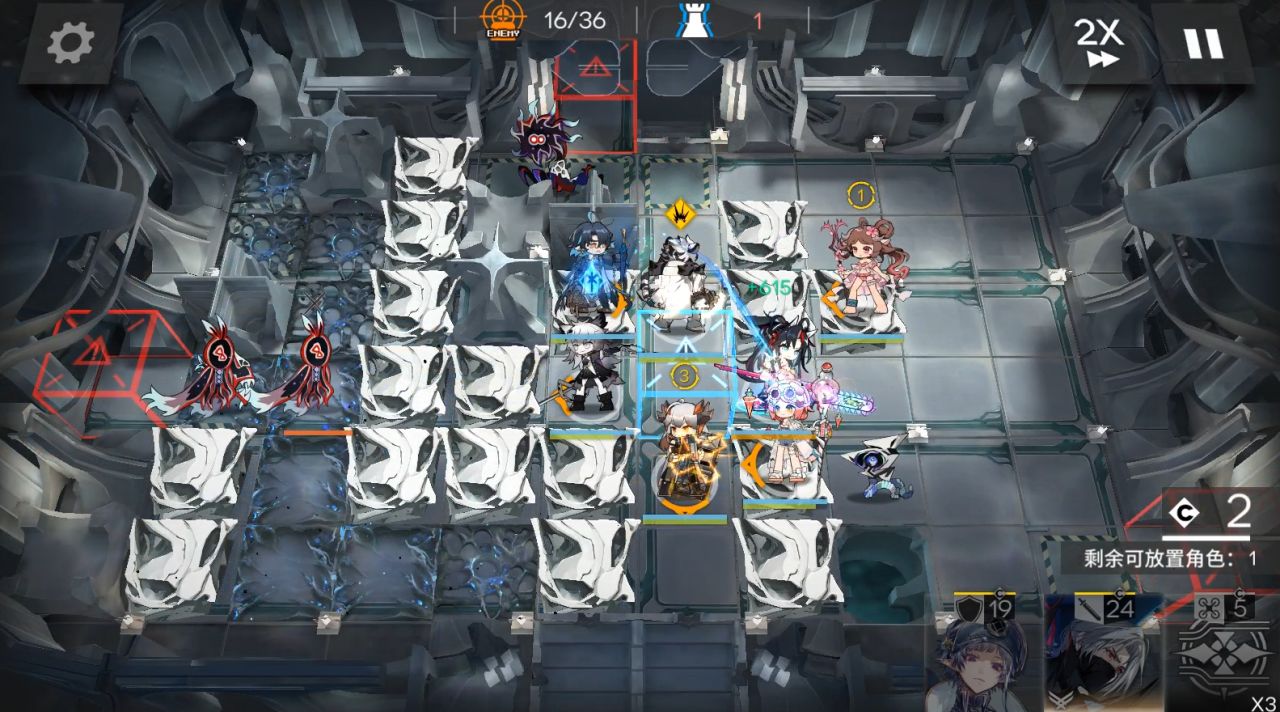 依次部署山,煌朝左挂机,流明朝下,小羊朝上挂机。注意普通难度有刻章需要在3个不同怪形成的平台上面部署。