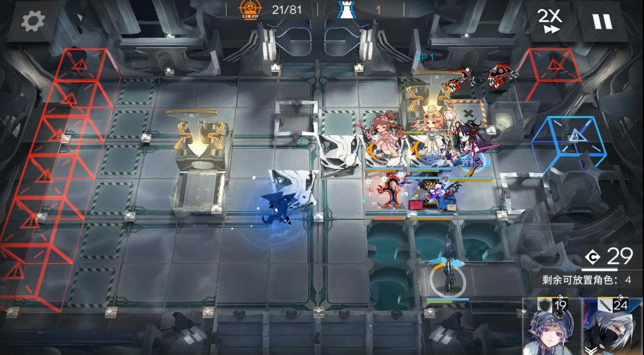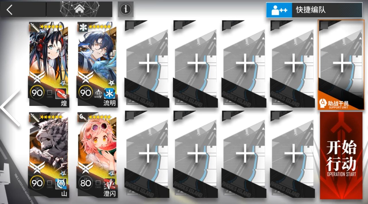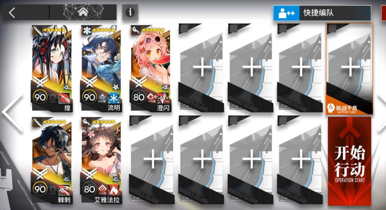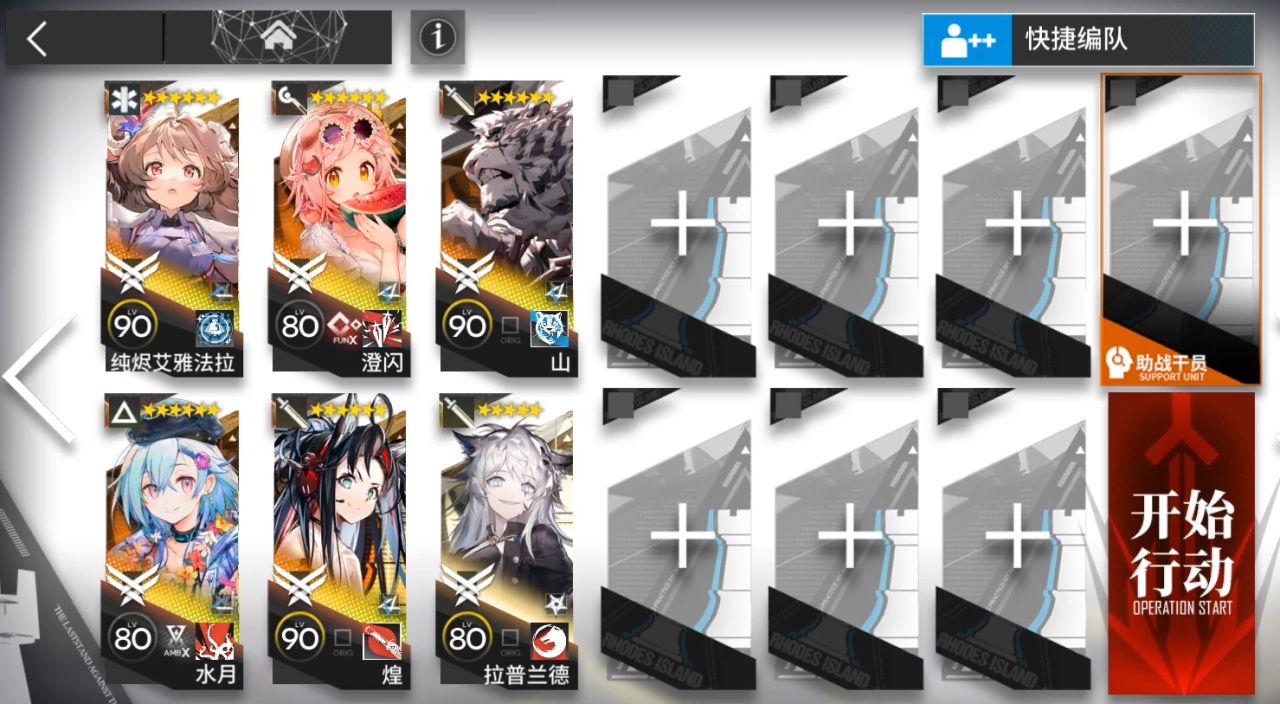 依次部署拉普朝左,山,小羊朝上,煌朝左,水月,粉毛朝左挂机即可。