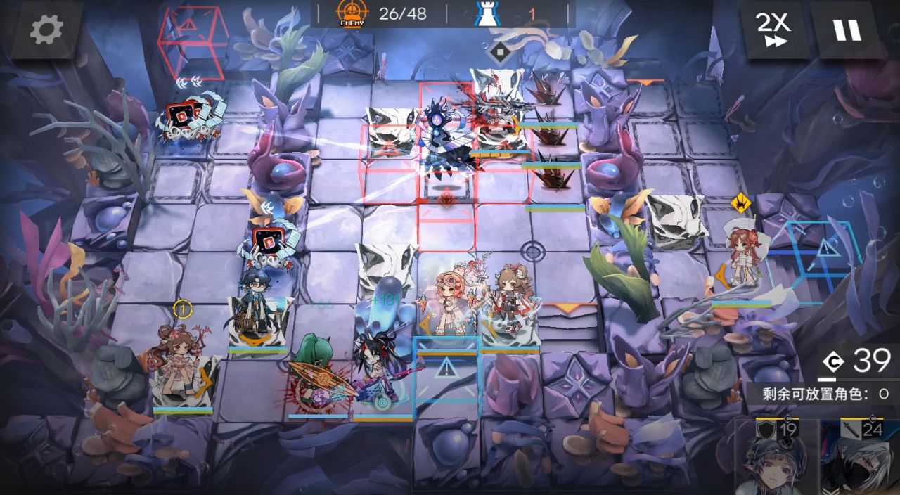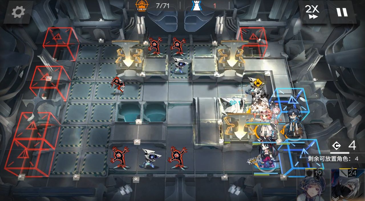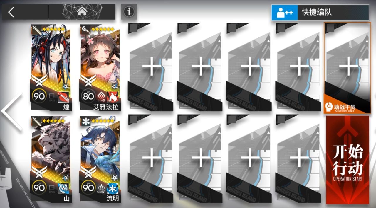 依次部署拉普朝左,山,小羊朝上,煌朝左,水月,粉毛朝左挂机即可。