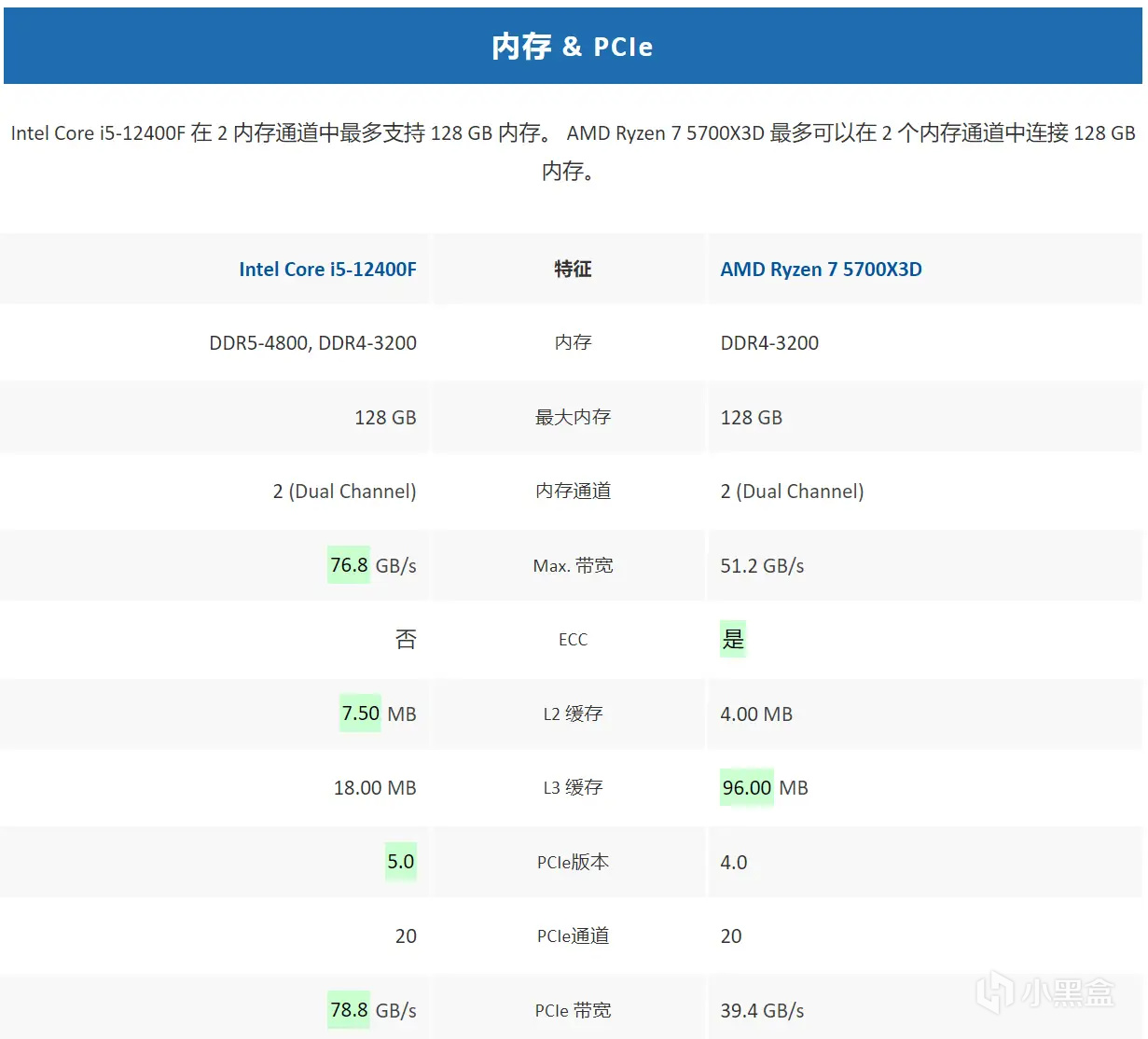 同時,兩款CPU在內存和PCIe方案方面也存在很大不同: