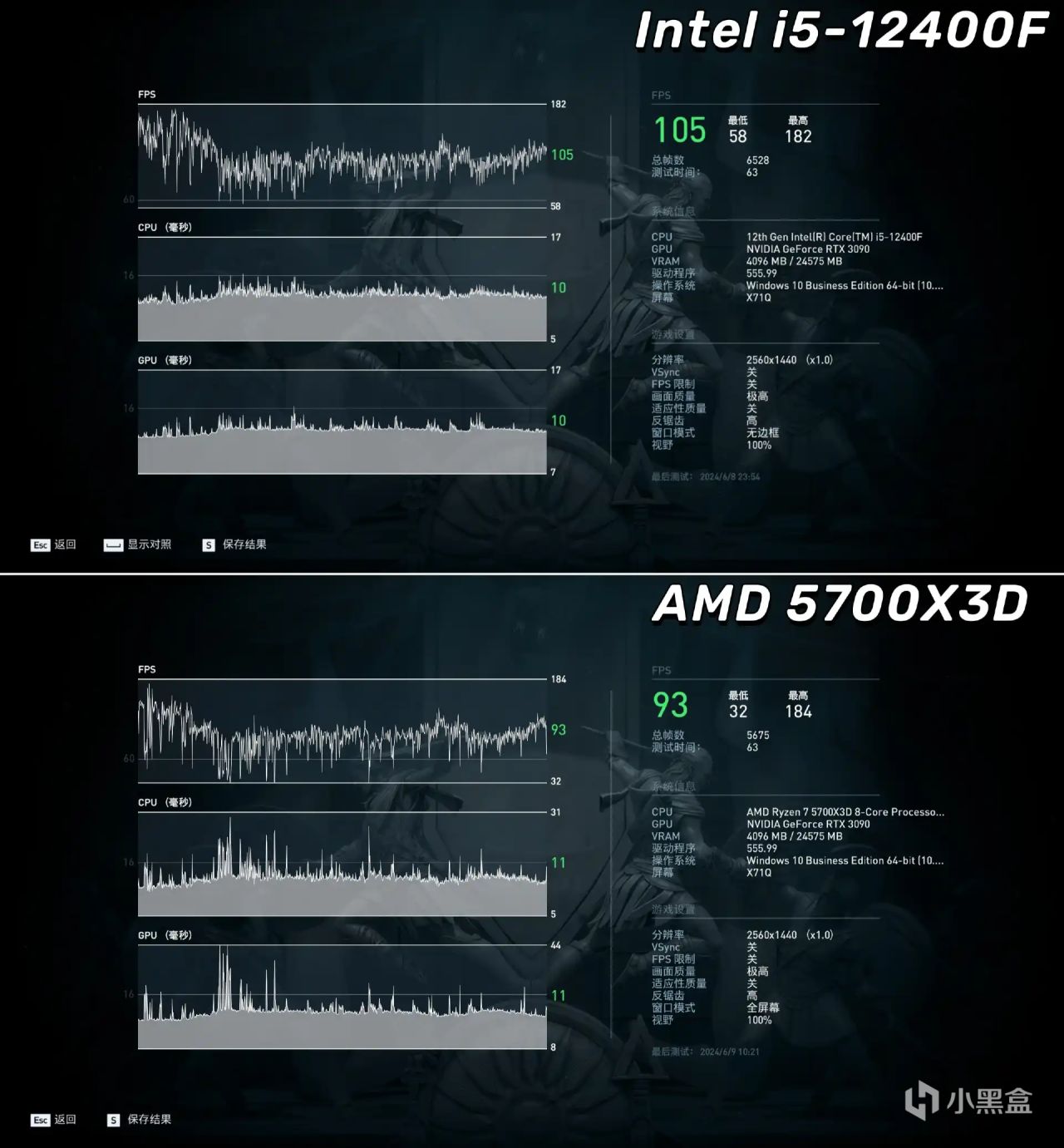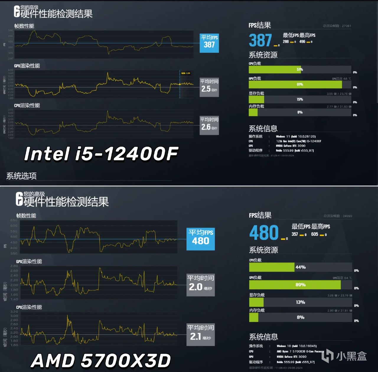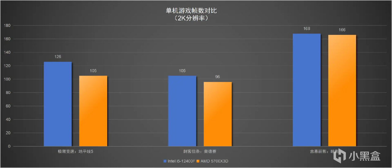 可以看到,在以上幾款3A遊戲中,價格更貴的5700X3D沒啥性能優勢,甚至在表現反而不如12400F。
