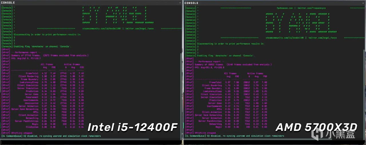 在《CS2》中,採用創意工坊的Benchmark地圖進行測試,i5-12400F平均爲242.5幀,1% LOW幀爲133.7幀;5700X3D平均爲251.9幀,1% LOW幀爲126.9幀。