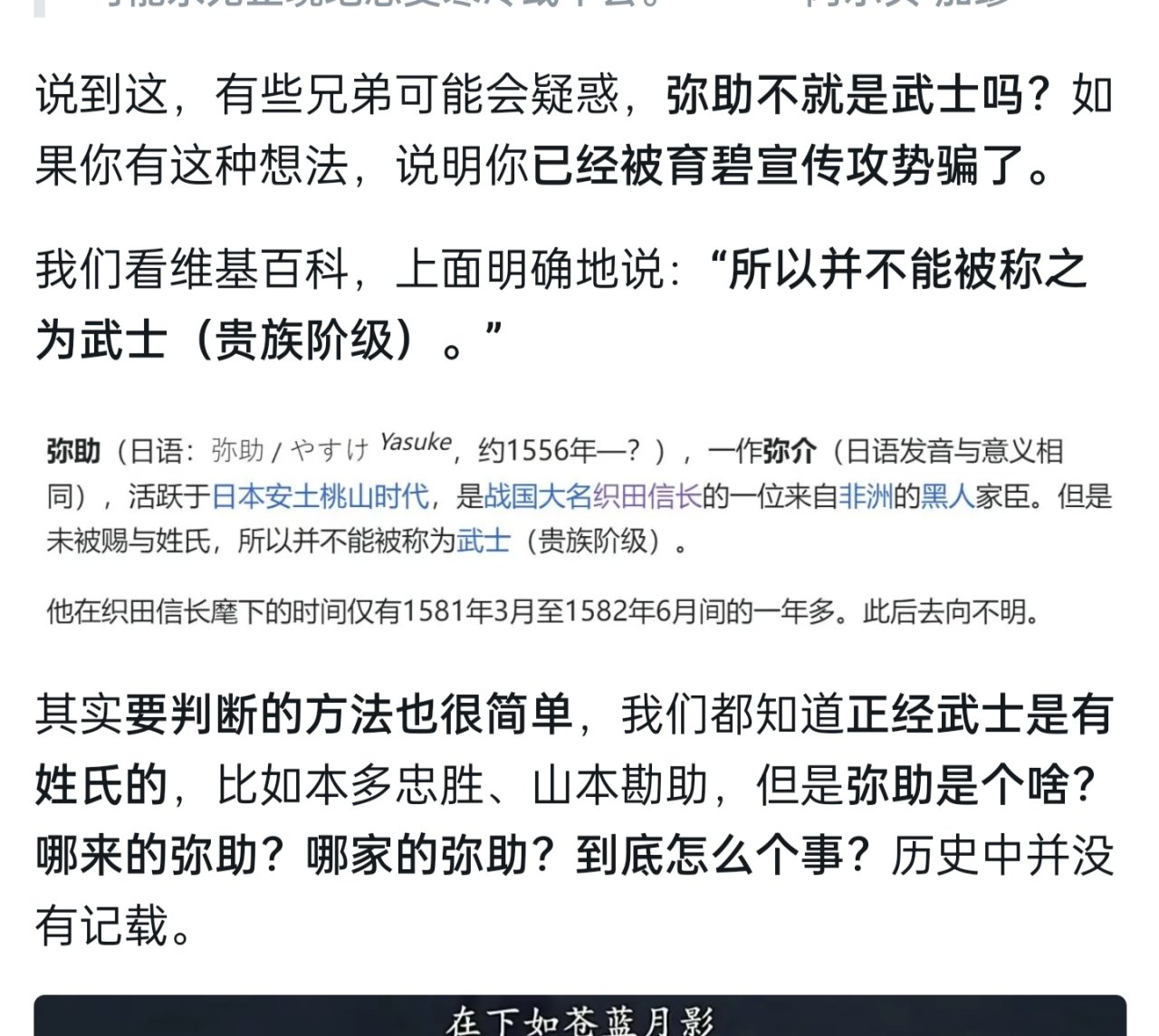 昨天第一次进影的版块儿,一进来就看到这位朋友写的文章,看到反响还有点大,但是他其中关于平民和武士的观点逻辑问题很大,我把有问题的截图放下面了,没看过的可以先看一下。