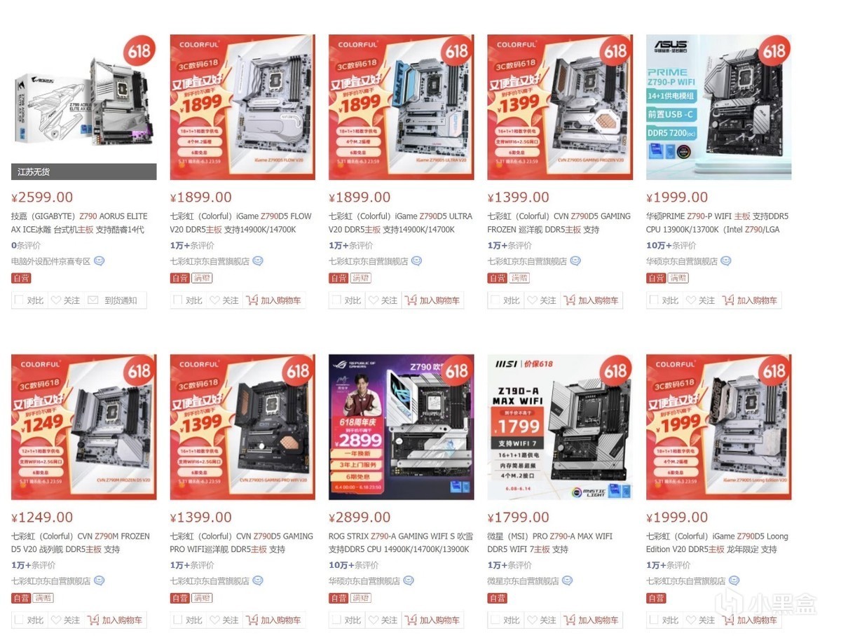 CPU確定了就直接定主板,直接選擇D5主板,這點不用考慮,而且我更看重ATX主板的可擴展性,所以會直接選擇Z790主板,而不是B760M系列主板。雖然Z790主板價格要更高些,但堆料更強、性能更強、擴展性更強。目前的Z790白色主板品牌和數量有所增加,但供電插槽、內存插槽可以是黑的,但PCB版總不能還是全黑吧?所以就直接Pass掉華碩Prime Z790P,剩下的就是在技嘉Z790 Aorus Elite AX ICE冰雕和七彩虹iGame Z790D5 Flow V20之間進行選擇即可,技嘉主板目前在超頻性能方面的提升很大,但價格有些偏高,目前來看最貼近自己預期的也就是七彩虹iGame Z790D5 Flow。