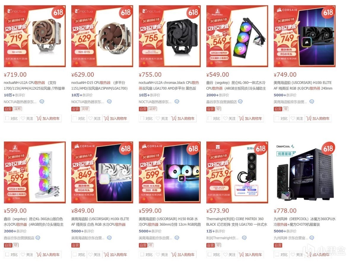 散熱器方面,需要我們根據CPU型號以及散熱器標稱的散熱性能進行選擇,並不一定是360水冷的散熱性能就一定優於風冷。不管是風冷的6mm熱管數量、迴流焊工藝、自帶風扇規格,還是水冷內置的軸承、水泵、微水道銅底以及自帶的風扇規格等等,最終比拼的就是實際的散熱性能以及噪音,至於自帶LCD屏幕這類設計,屬於加分項。我習慣性選擇360水冷的原因除了看重基本的散熱性能外,更主要的是爲了玩燈。目前主流的水冷和風冷都會同時支持AMD平臺和intel平臺,不用擔心後續換平臺導致無法使用的問題。