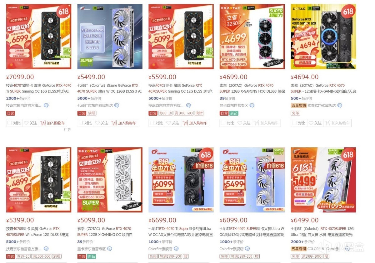 問題是當前的各大自營店或是旗艦店已經把RTX4070 Ti下架,只能在一些第三方店鋪進行選擇,但價格也並沒有什麼優勢,所以我直接在RTX 4070 Super顯卡中進行選擇,價格預算就是5000左右。最後我是在三款白色顯卡中進行選擇,分別是技嘉雪鷹 GeForce RTX 4070SUPER AERO OC 12GB、七彩虹(Colorful)iGame GeForce RTX 4070 SUPER Ultra W OC 12GB和索泰(ZOTAC)GeForce RTX 4070 SUPER 12GB X-GAMING OC,均採用了16 PIN供電接口設計,同時提供了3個DP1.4接口+1個HDMI 2.1接口,這三款顯卡目前均有附贈《黑神話:悟空》。就價格而言,三款顯卡里面索泰(ZOTAC)GeForce RTX 4070 SUPER 12GB X-GAMING OC要更有優勢。不過因爲是白色主題的海景房裝機,顯卡自然是優先考慮純白色的,而七彩虹iGame GeForce RTX 4070 SUPER Ultra W OC和索泰RTX 4070 SUPER 12GB X-GAMING OC都不算是純白色的顯卡,所以最後選擇的就是技嘉雪鷹 GeForce RTX 4070SUPER AERO OC。