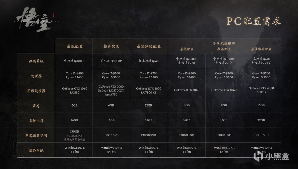 在PC硬件配置要求方面,《黑神話·悟空》最低只需要GTX 1060或是RX 580即可在中畫質1080P下進行遊戲,在光追下進行遊戲則最低需要RTX3060,但也只是在中畫質1080P、光線追蹤低參數設置下,推薦的RTX4060參數設置也只是中畫質1080P、光線追蹤中,而推薦的RTX4080 Super雖然可以在4K高畫質、光線追蹤超高下進行遊戲,但價格偏高,所以我會選擇RTX 4070 Ti或是RTX 4070 Super,反正平時基本就是在2K分辨率進行遊戲。如果這兩類顯卡差價在400元以內,那麼我會直接選擇RTX 4070 Ti,否則的話我就直接選擇RTX 4070 Super,畢竟這兩款顯卡在遊戲性能並沒有拉開太大的距離。