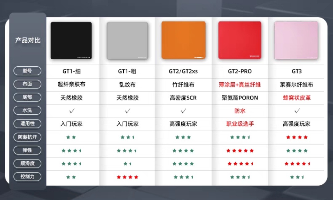 在這麼多的墊子裏面我最喜歡的是GCK4,相比於其他型號滑度要高一些,也是類零的一款墊子,我個人推薦那些需要微調,停頓的這類遊戲的玩家,像我是有些偏手腕流這款墊子就沒有那麼磨我的手。
