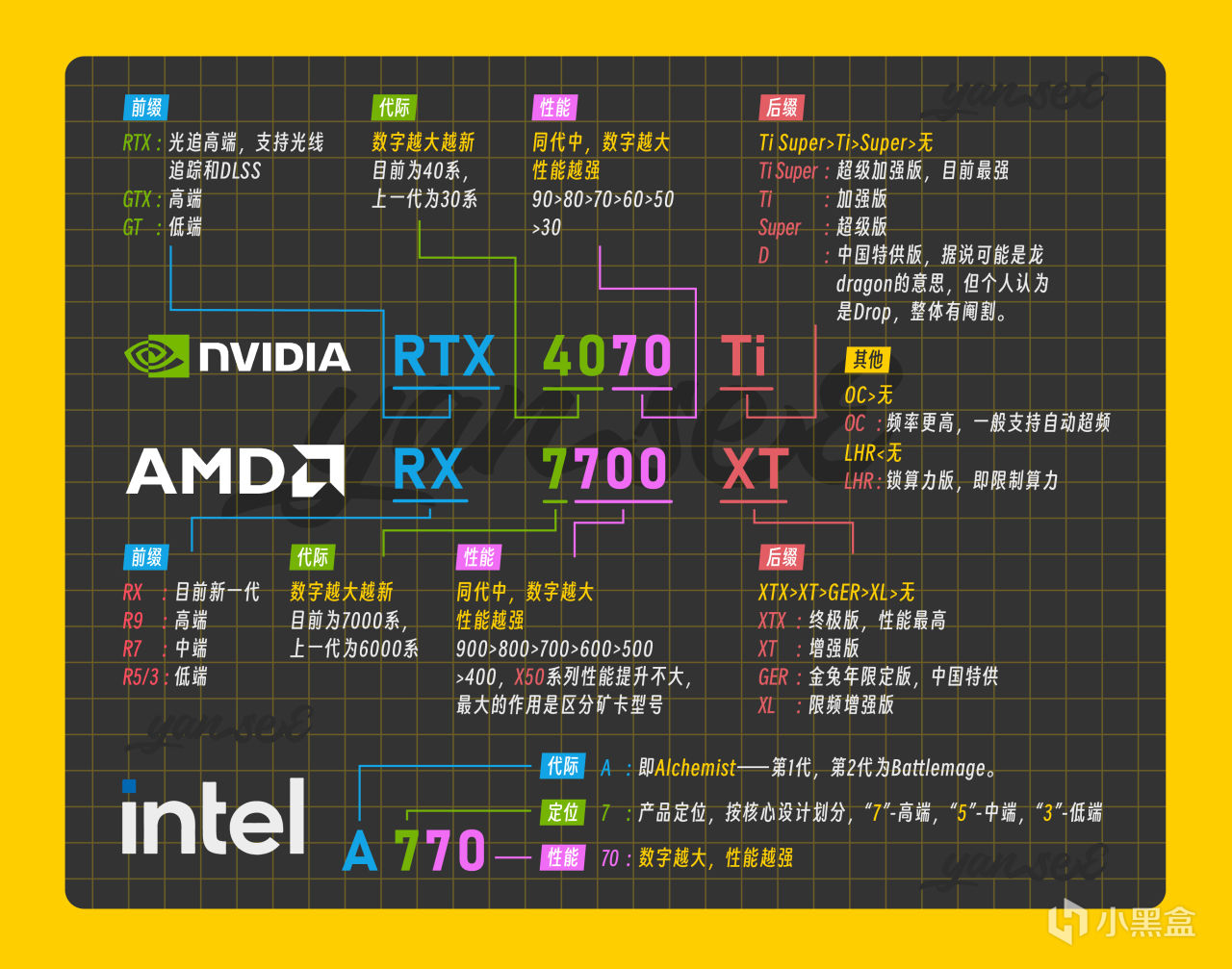 本期指北主要是对之前显卡品牌指北的更新,主要简单介绍面向台式机的消费级显卡——英伟达Geforce系列、AMD Radeon RX系列、英特尔锐炫A系列以及3家的官宣合作品牌、子品牌和一些其他品牌。意在交流分享,无任何恰饭营销,个人主观性十分强烈