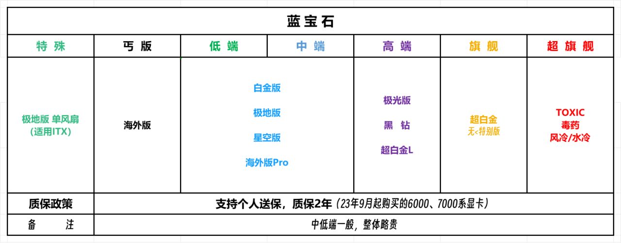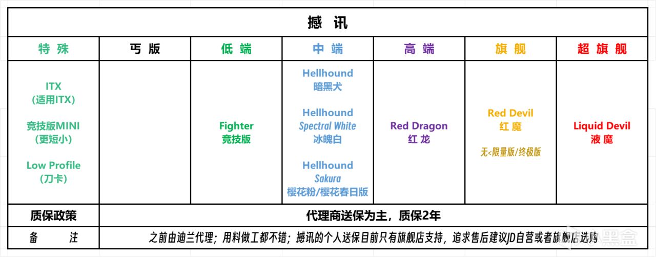 - AMD(超威半导体):撼讯、蓝宝石、华硕、华擎、讯景、微星、瀚铠、盈通、技嘉、速驹。