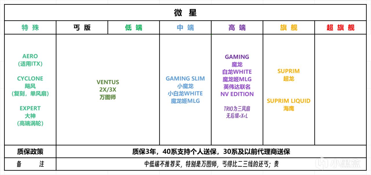 无论是“一、二、三线”,还是“低、中、高端”,实际上都是为了让大家在了解的时候有一个基本的参考指标。不可否认厂商之间的技术水平有高低之分,但这些最终还是要看产品本身,就像微星的万图师和映众的曜夜。