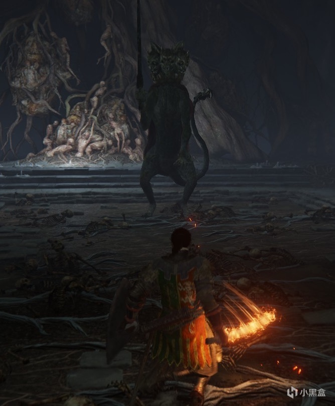 雖然小惡魔本身威脅不大,破盾能力差,帶一個物防百分百的盾以及注意一下出血條的累計就行了,但是宮崎英高的幼年體善於利用地形來對玩家進行肉體和精神上的雙重打擊,包括但不限於拐角殺、前後夾擊、一起埋伏等,配合墓地機關可以進一步擊潰玩家心理防線。
