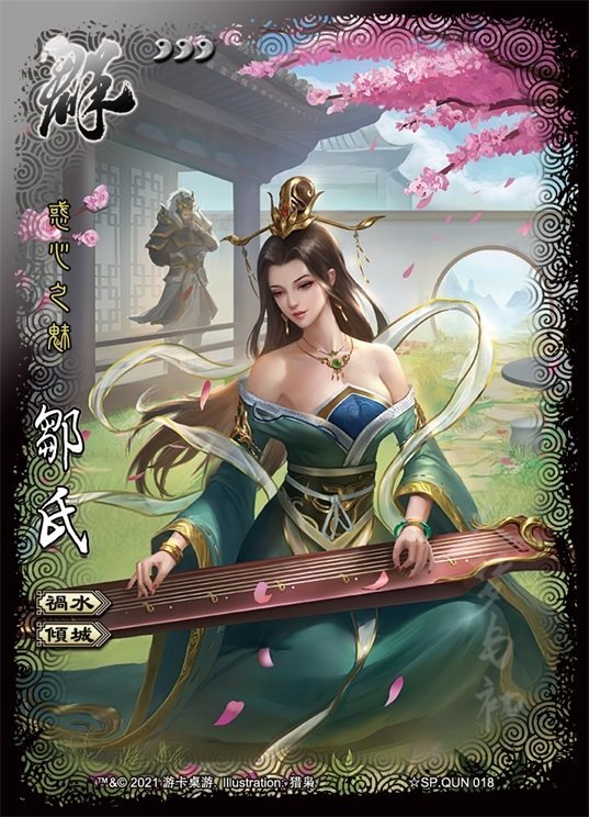 一技能孤吟,又名孤獨搖滾(劃掉),效果簡單說是翻面摸牌,但是全場所有男性角色都可以選擇是否跟着翻面摸牌,牌總數是定值,翻面人越多,每個人牌越少。純女武將對局的話,鄒氏直接翻面,過……