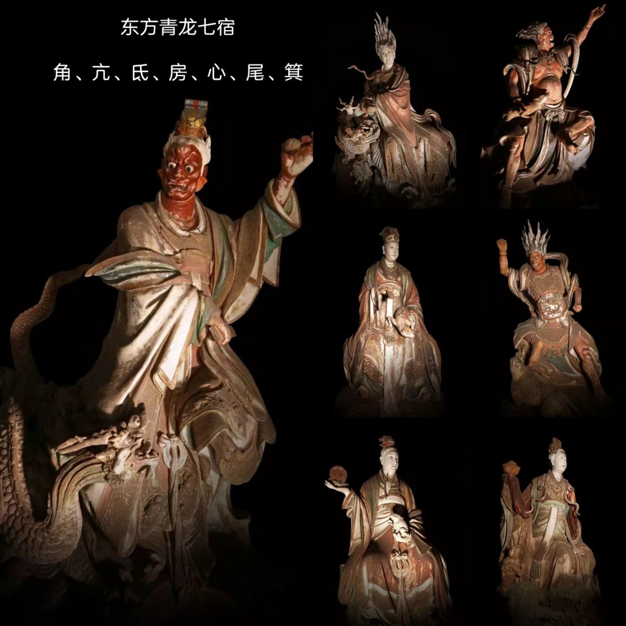 亢金龍,殿內南起第十六尊造像,通高1.69米。這是一位怒目下視的中年女性形象。她的白色長髮向上豎立,眼角上挑,眼睛炯炯有神;嘴部微開,露出緊咬的牙關,而嘴部附近的肌肉亦隨之向兩側拉伸。