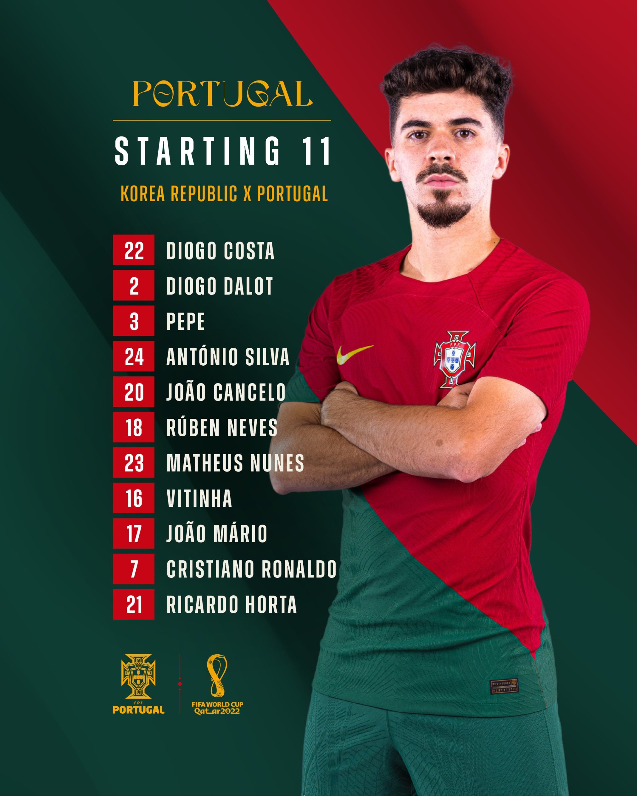 葡萄牙替补:1-帕特里西奥、12-若泽-萨、4-鲁本-迪亚斯、5-格雷罗、6-帕利尼亚、8-B费、10-B席、14-威廉-卡瓦略、9-安德烈-席尔瓦、11-菲利克斯、15-拉斐尔-莱奥、26-贡萨洛-拉莫斯