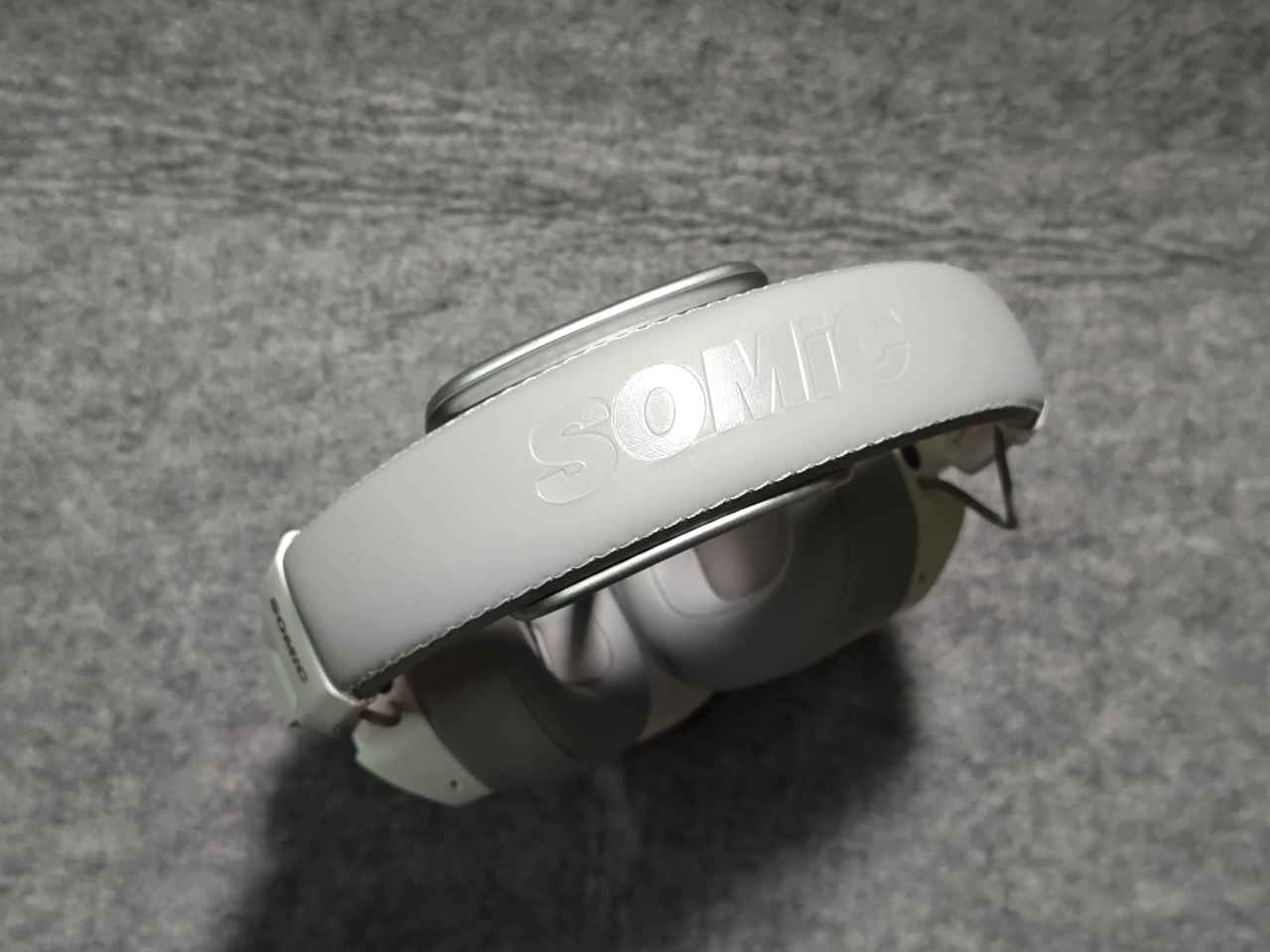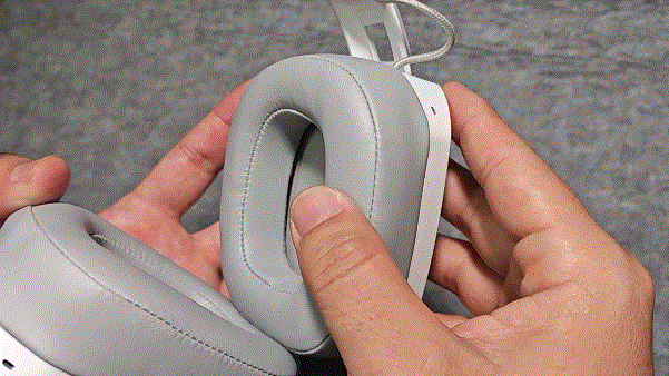耳機的耳罩採用非常柔軟的蛋白皮材質,裏面填充了高密度的海綿,總體的佩戴舒適性很強,不會有擠頭的情況出現,不過大夏天的,蛋白皮材質可能會有點悶。嘛,雖然我在24度的空調房沒這個顧慮就是了。