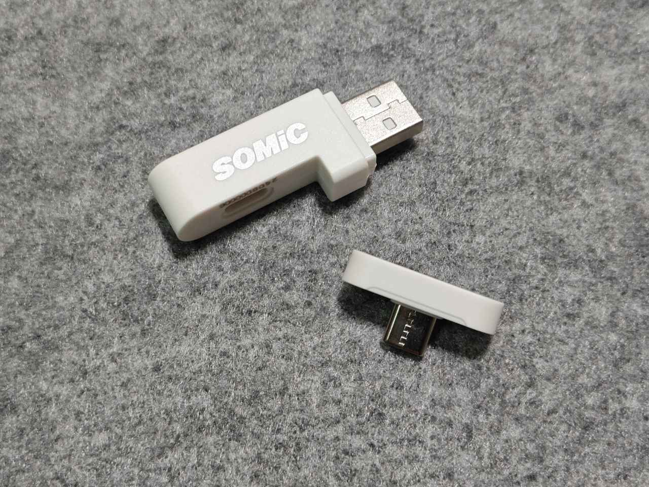 MH201支持三模的連接方式,他送了一個C口的2.4g接收器跟一個USB接口的轉換器,這樣設計既能讓手機使用,又可以讓電腦使用。而2.4g的連接狀態下,不管是穩定性還是延遲表現都是要優於藍牙模式的。