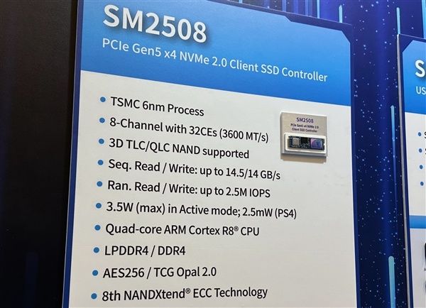 慧榮SM2508採用了先進的臺積電N6 6nm工藝,也就是7nm的升級版,是迄今SSD主控中最爲領先的。