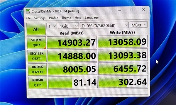 現場演示中,它更是跑出了14.9GB/s的讀取速度!