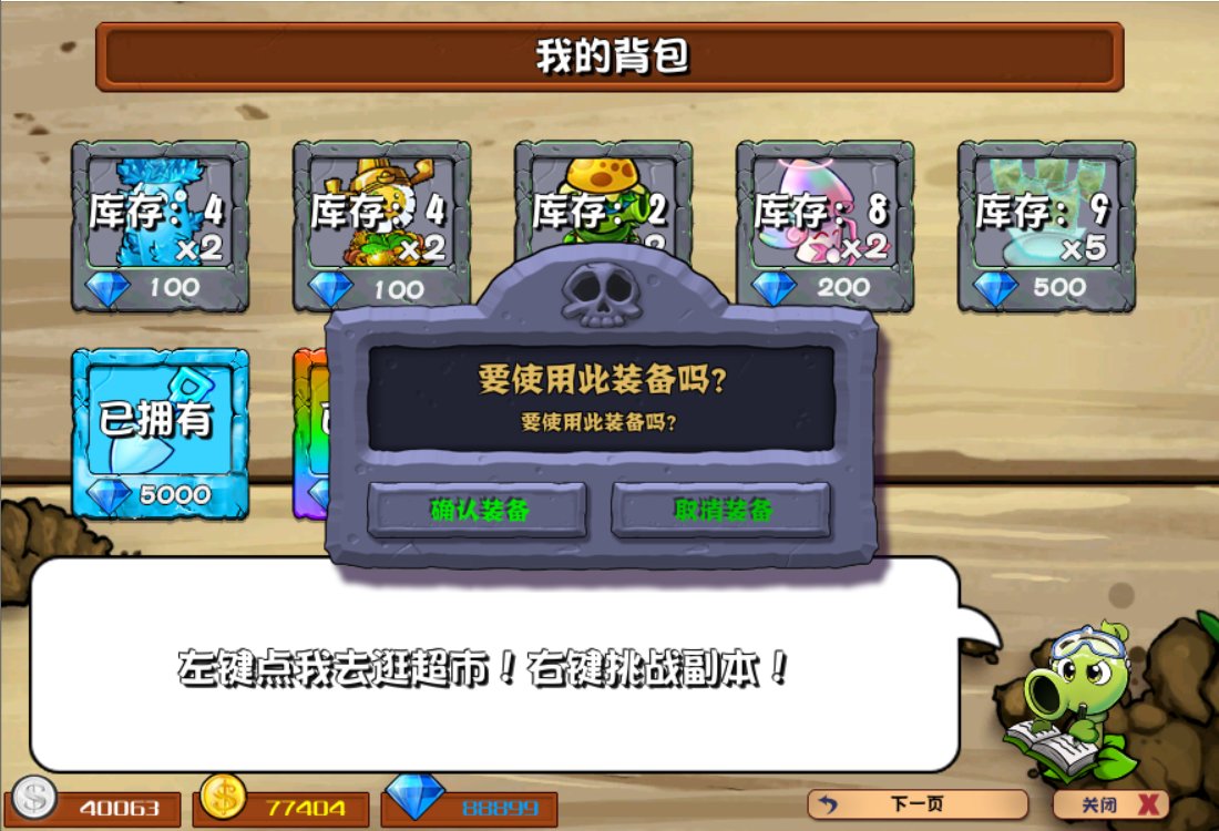 在主菜單的揹包內,點擊鏟子進行裝備,剷除植物可返還部分陽光,鏟子品質越高返還陽光越多,分別返還10%、20%、30%陽光