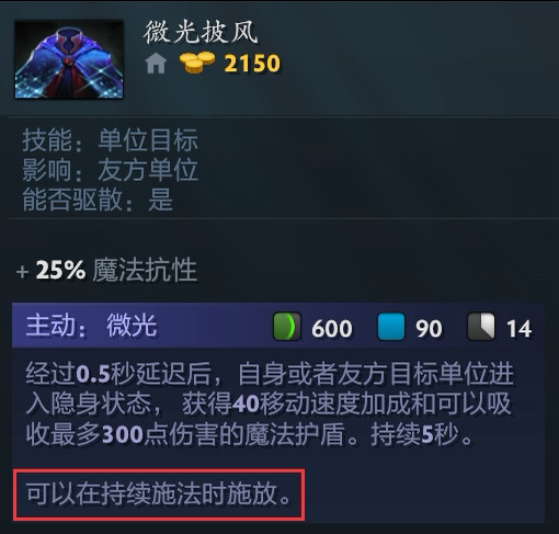 3.隐刀和微光披风:它们可以在持续施法中使用(比较常见的是TP使用,或者像巫医放大的时候使用)