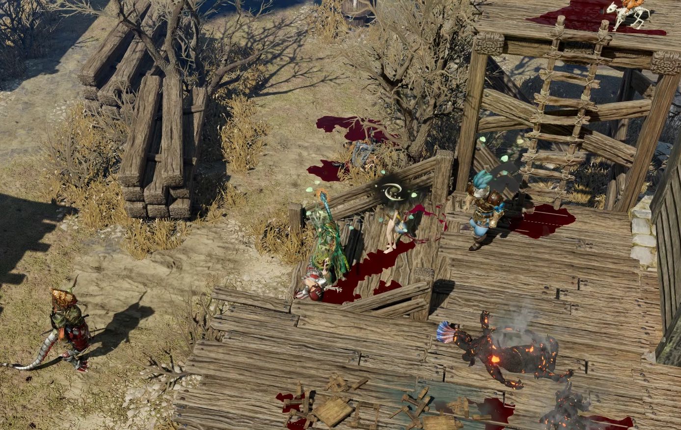 顺着地图上的标记,刚到伐木场南侧,便目睹了精灵的下葬仪式。一行人刚想走近,就被守卫的两位精灵拦住了道路,显然仪式现场拒绝非精灵种族。