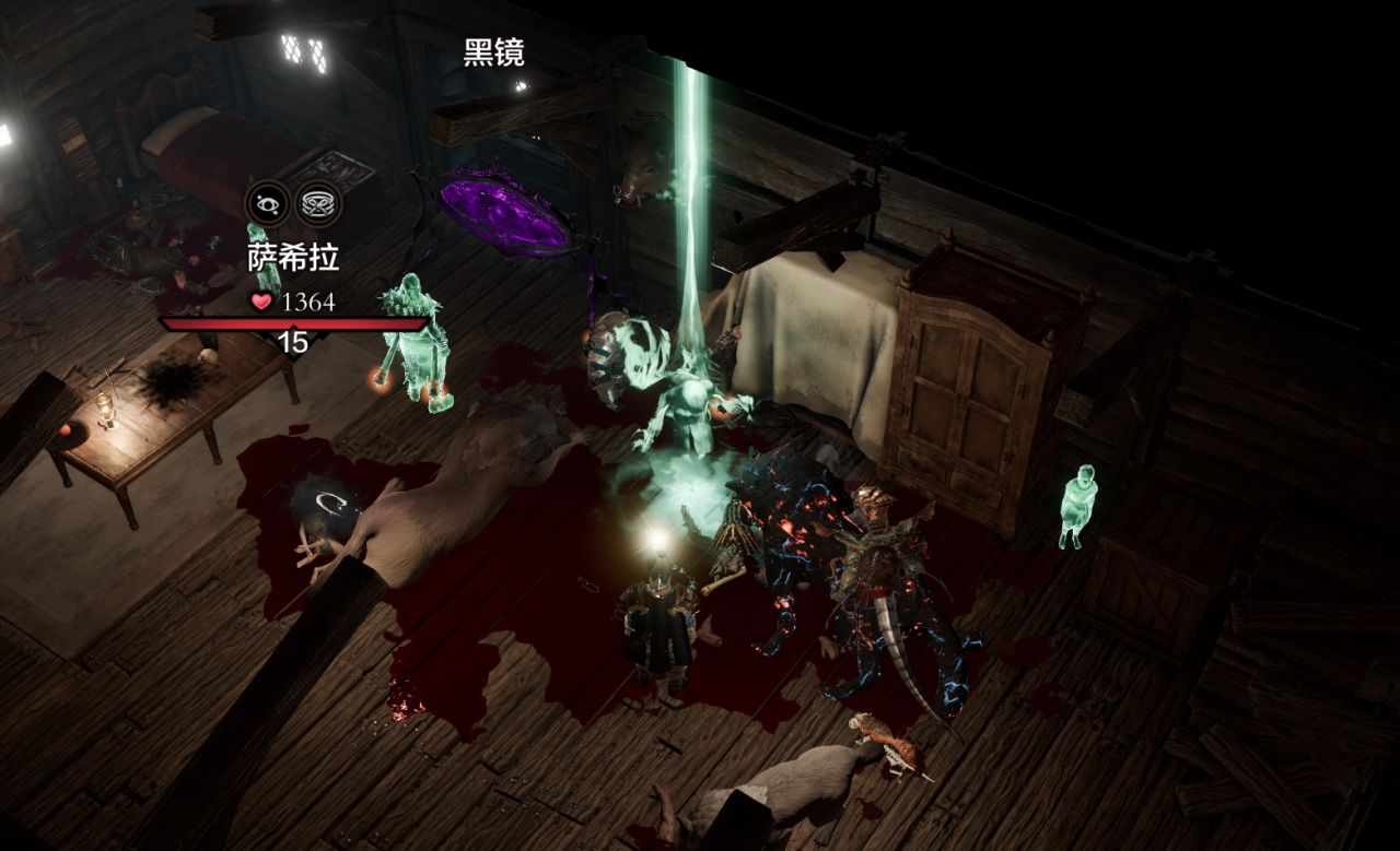 刚进入这蛮荒之地不多久,一座小木屋出现在眼前,四人思索过后,决定先在那休整片刻再出发。刚刚打开木门,一柄冰冷的刀刃已然抵住了我的下把,正要掏出武器对峙时,却发现武器也已被牢牢控制。她用刀逼我进入屋内,一位净源导师蹲坐在旁边已然奄奄一息,同时我们观察到,这个威胁着我们的女人身着黑环服饰。