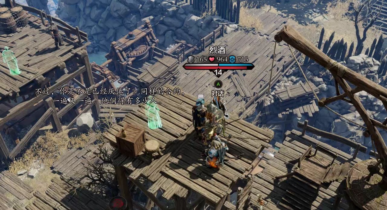 刚刚进入领地,就初见了这个鬼地方的端倪——所有人身边都漂浮着一个灵魂,与灵魂交谈发现,在这儿的每一位孤狼都无情地杀害过某人,除了一旁的造箭师。与其交谈后能发现,他仅是在这过活,并不跟其他的孤狼一样罪孽深重。与所有灵魂交流后,我们清楚了每位孤狼的种种罪行,而后一行人上到二楼,找到罗斯特·安隆。
