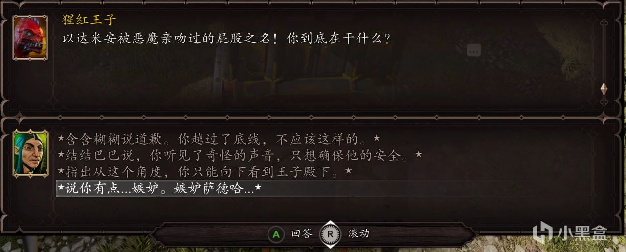 我踮起脚尖向内窥去,不料却与绯红公主四目相对,猩红王子愤怒地打开窗户抓住我的脖子质问为何这样做。慌乱之中我急中生智回应二字:嫉妒。