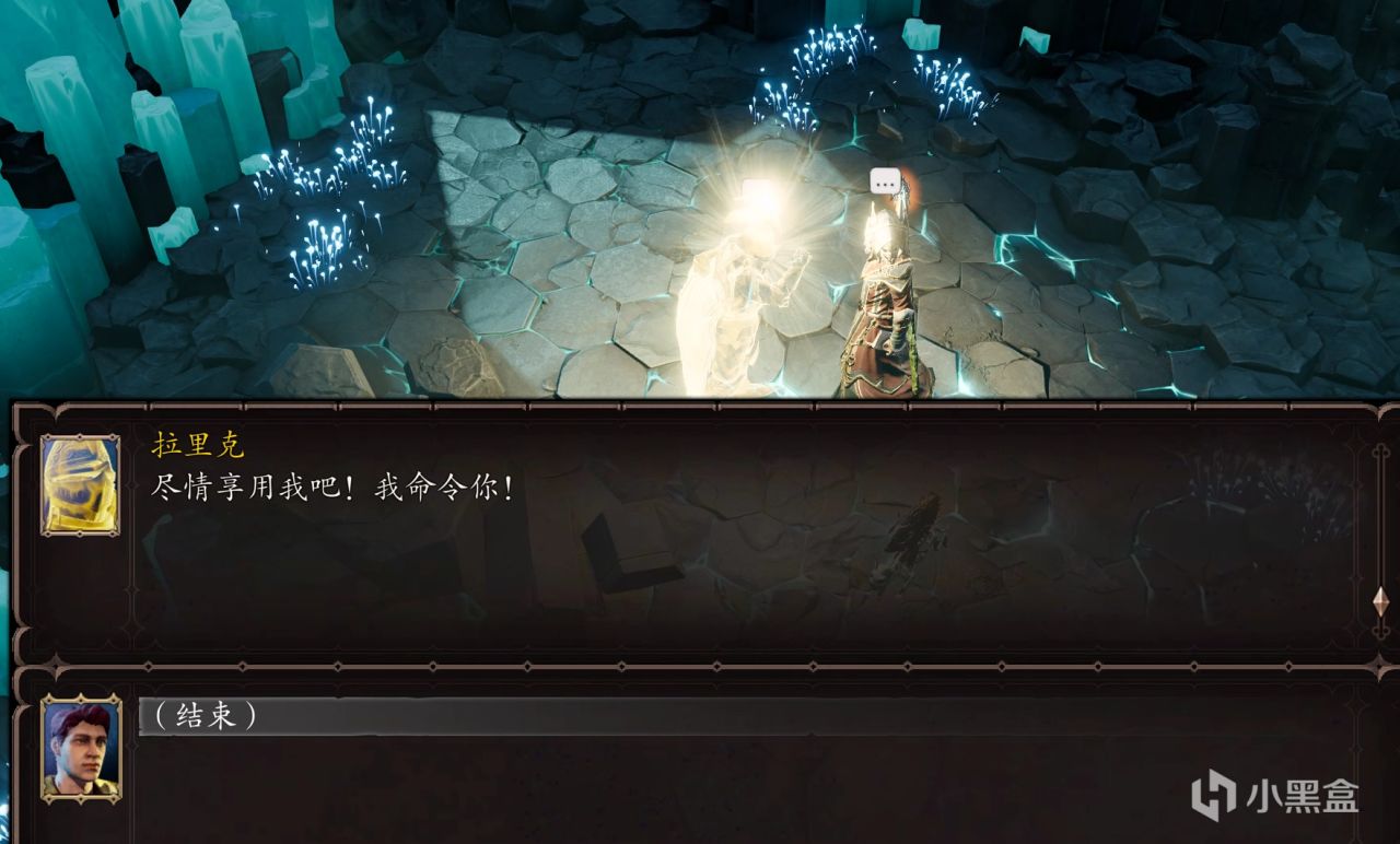 拉里克仍像上次那样站在我面前,不同的是他看起来好像比以往更加虚弱了。他直截了当地教给了我全新的秘源能力:吞噬,并要求我将他吞噬掉,感受对秘源的渴望。我照做了。他还要我们在到达飞升之井前尽情享用他人灵魂,但我无法安心地享受这种野性的快感,没有回应他。再次猛吸一口烟雾,我回到了现实世界。
