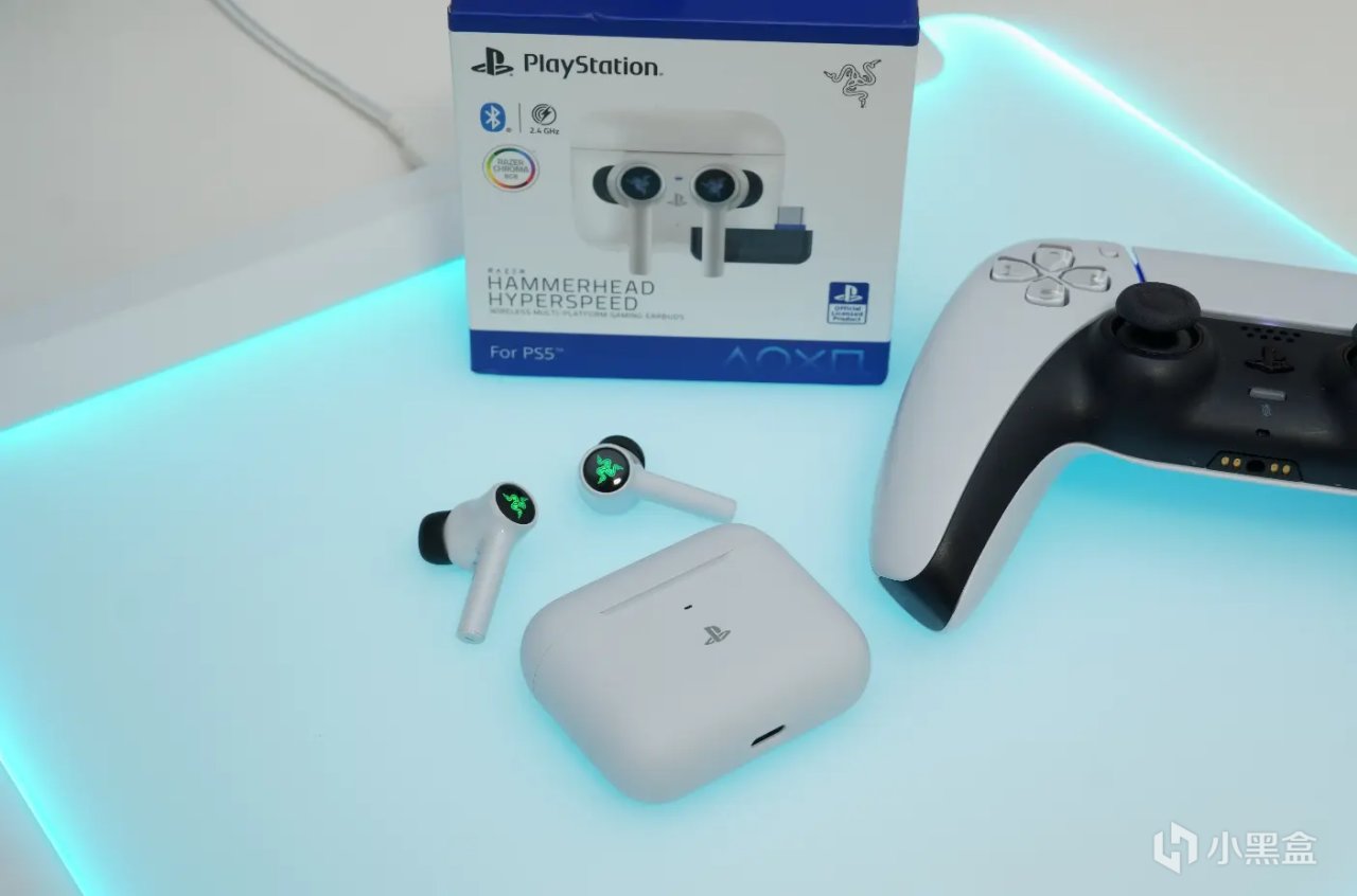 ▲因为我平台比较多,所以我使用的是雷蛇战锤狂鲨极速版 Playstation 认证款,相较于普通版本,这款耳机带有一个 Type-C 的2.4GHz收发器,使用接收器进行链接会比蓝牙的延迟低一半,让游戏更加爽快。