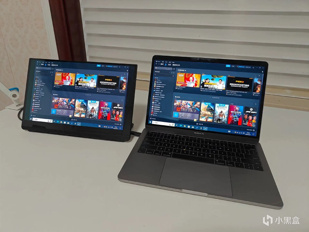 另外,我还整了一块EHOMEWEI O3 Air便携屏,笔记本电脑+便携屏能够大幅增加我的屏幕视野,能够大幅提升工作效率。便携屏方面,我用的是EHOMEWEI的O3 Air,这是一款13.3英寸的OLED便携屏,其搭载了一块4K分辨率的A+级原装三星OLED面板,8振10深色,官方宣传覆盖了100%的DCI-P3色域与100%的AdobeRGB色域,刚好和我的MacBook色域相当,实际色彩表现也极为优秀!