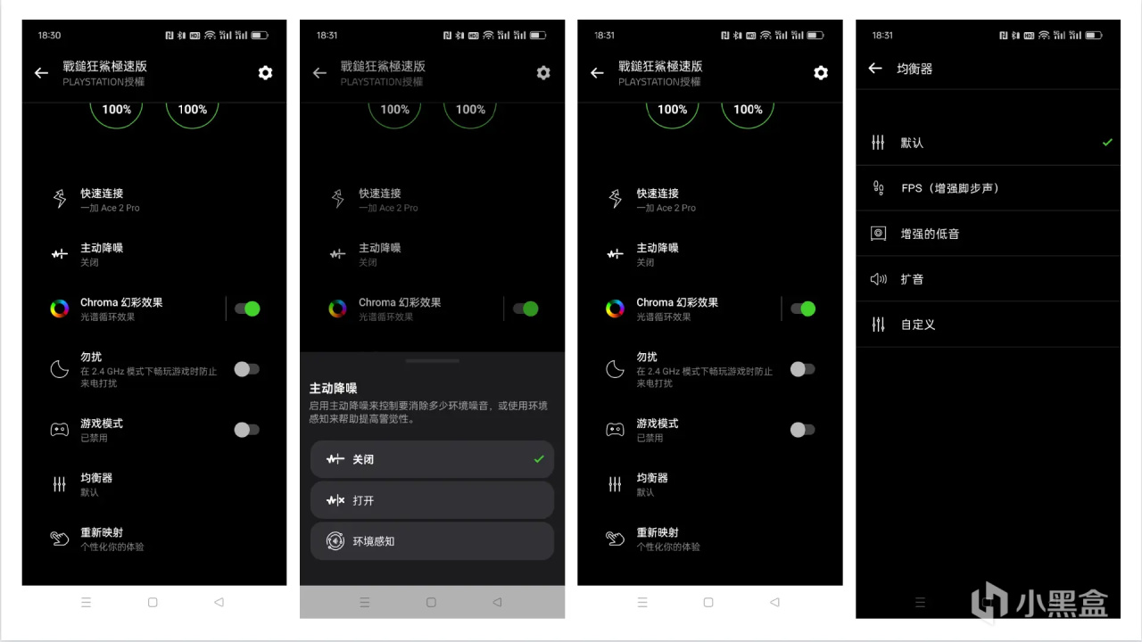 ▲另外,雷蛇还为旗下的音频产品开发了RAZER audio音频软件,在其内可以开关\调整主动降噪功能,开关Chroma幻彩效果、调节均衡器,以及开启游戏模式(降低延迟)与勿扰模式(2.4GHz连接时,屏蔽来电)等等,可以说是一款十分优秀的游戏TWS耳机。