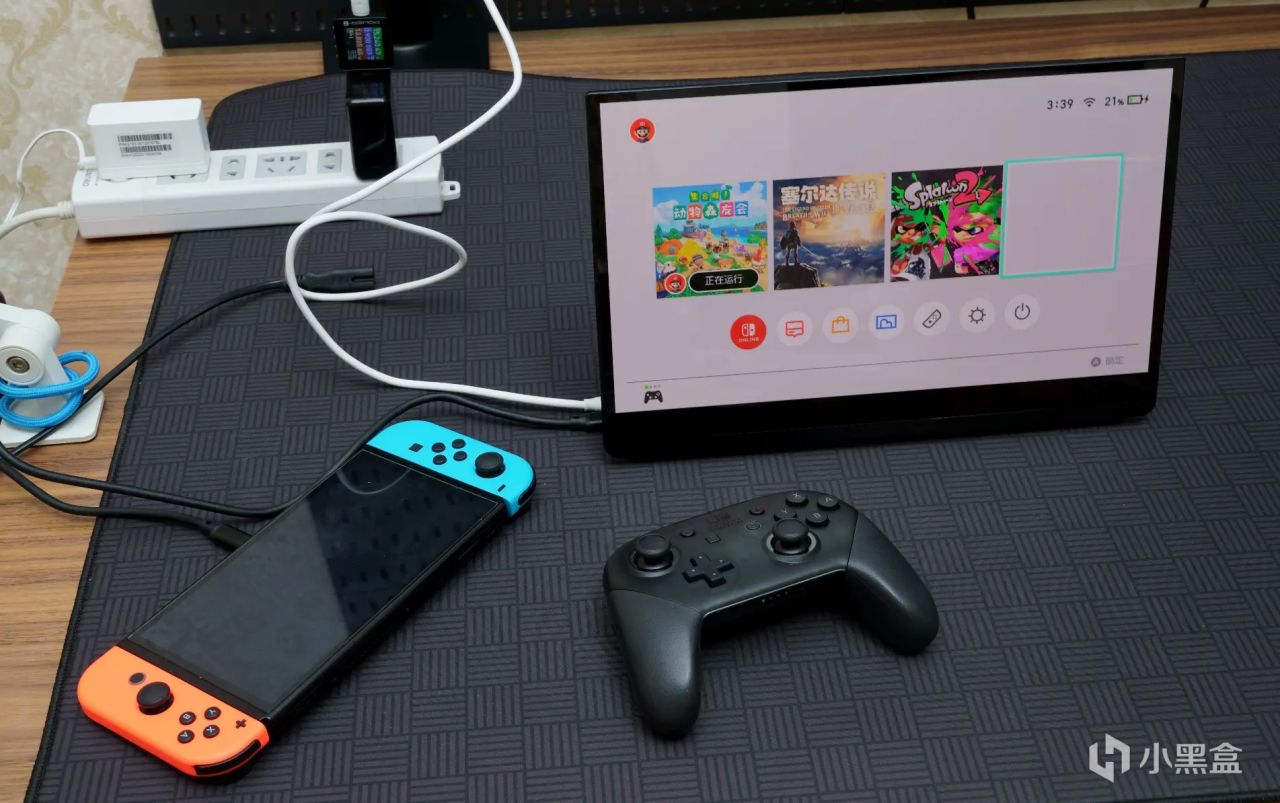 ▲这款便携屏,除了连接笔记本电脑用于办公之外,直接一线连接Switch也不错,当然,此时是需要再用一个充电器,给Switch与便携屏同时供电的。