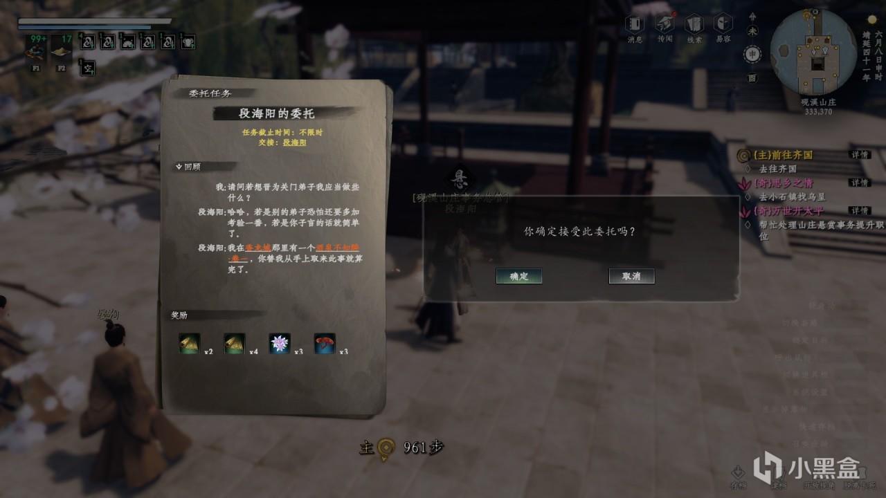 達到一定條件可在事務總管處繼續交互選擇晉升,比如內門弟子,需要採集五個仙茅,位置可以點擊仙茅查看,追蹤位置進行物品的獲取,而關門弟子則需要滿足宗門好感50以上,劍術300以上以及儒學150以上才能解鎖任務獲取資格,成爲掌門的途徑就是在這裏完成任務一步步晉升,感覺最簡單的跑圖方式就是找御者先進行傳送然後利用輕功或是騎馬等方式到達目的地。